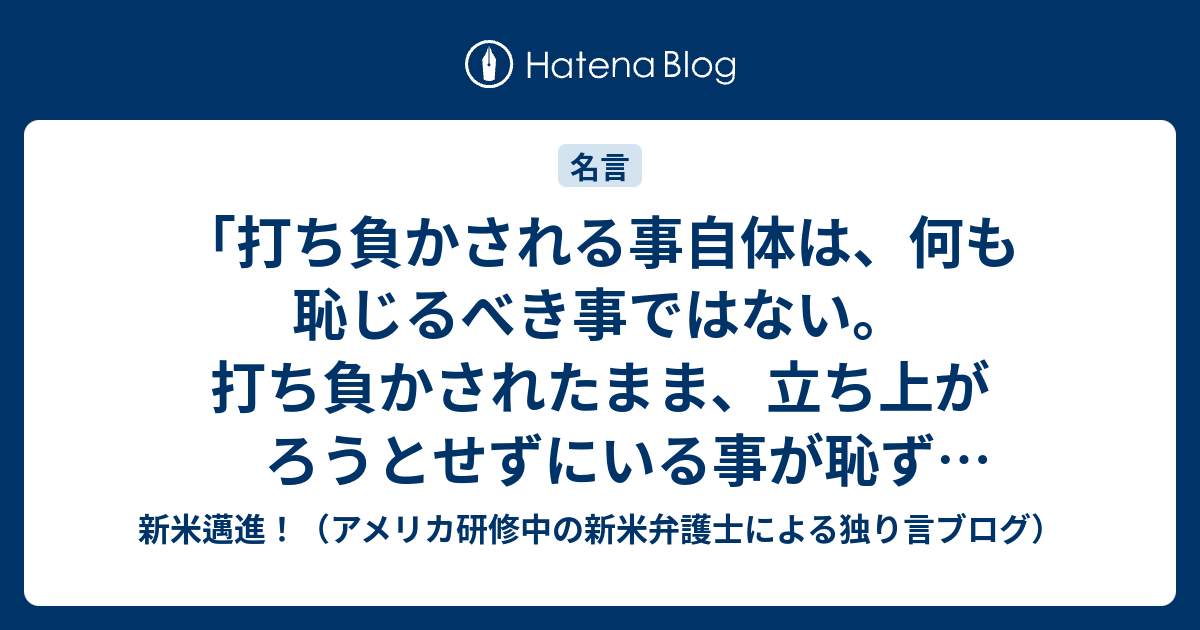 打ち負かされる事自体は 何も恥じるべき事ではない 打ち負かされたまま 立ち上がろうとせずにいる事が恥ずぺき事なのである 新米邁進 アメリカ研修中の新米弁護士による独り言ブログ