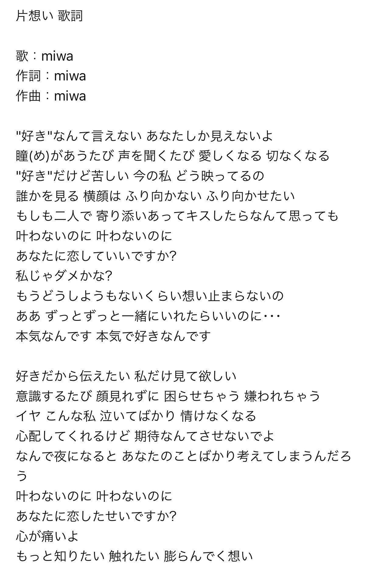 片想い 歌詞 Miwa Kkbox